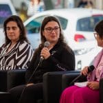 No encontro, realizado junto ao Mercado Municipal de Santiago do Cacém, ouviram-se testemunhos enriquecedores de experiências e histórias de vida de mulheres, e em representação de instituições, que têm contribuído em várias áreas da sociedade para firmar o papel das mulheres enquanto promotoras de valores de igualdade, inclusão e participação ativa na comunidade local como promotoras da não descriminação. Participaram no painel: Sónia Gonçalves, Vereadora da Câmara Municipal de Santiago do Cacém da Área da Ação Social; Paula Lopes, Presidente da Assembleia Municipal de Santiago do Cacém em representação da área da política; Rita Redshoes, cantautora e em representação da área das artes; Ana Silva, Presidente da Associação de Patinagem Artística do Litoral Alentejano, em representação da área desportiva; Guida Silva, gerente do Monte do Giestal; e Rosa Martins, gerente da Gagarine Martins, Lda, ambas representando a área dos negócios; Sílvia Azevedo, Presidente da Artecorgeração Associação, ligada ao movimento Escutista da área do Movimento Associativo; Cecília Gil, Médica de família na Unidade de Saúde de Cuidados Personalizados da ULSLA, representando a área da saúde; Manuela Elói, Presidente da Cáritas Paroquial de Santo André, representando a área Social, Ermelinda Sobral do Movimento Democrático das Mulheres. A Presidente da Comissão para Igualdade de Género, Sandra Ribeiro, na impossibilidade de estar presente enviou uma mensagem da importância do combate às discriminações e violência de género e de se lutar por uma igualdade plena entre mulheres e homens.
