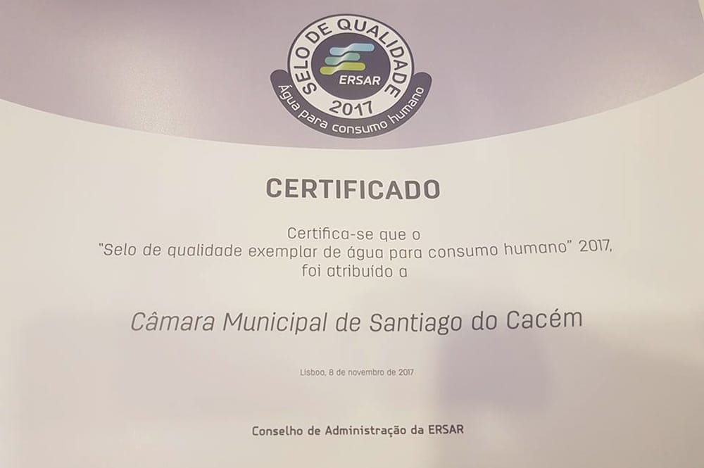 A Câmara Municipal de Santiago do Cacém recebeu, no passado dia 8 de novembro, o prémio para a Qualidade da Água Exemplar para Consumo Humano, cuja entrega decorreu no âmbito da 12.ª Expo Conferência da Água, em Lisboa.