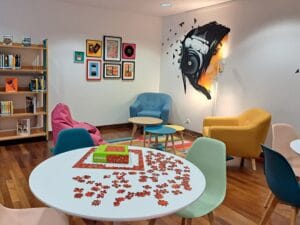 Tem à sua à disposição zonas de trabalho e de lazer, com acesso a computadores, televisores, leitura, gaming, jogos de tabuleiro e estratégia.