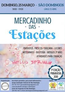 ![]() Dia 25 de março, 09h00, São Domingos, Lg. 25 de abril. Produtos frescos, doçaria, licores, artesanato, bijuteria...Inscrições gratuitas. Org.: Grupo de Animação Cultural de São Domingos. |
