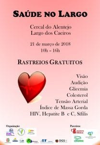 ![]() Dia 21 de março, 10h00, Largo dos Caeiros, no Cercal do Alentejo. Rastreios gratuitos de : visão, audição,glicemia, colesterol, índice da massa gorda, HIV, Hepatite B e C, sífilis |
