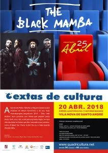 ![]() Dia 20 de abril, às 22h00, no Auditório da Escola Secundária Padre António Macedo, em Vila Nova de Santo André, mais uma edição das Cextas de Cultura com os The Black Mamba. Cextas de Cultura - The Black Mamba |