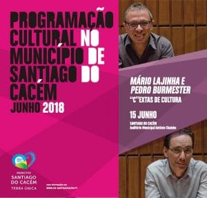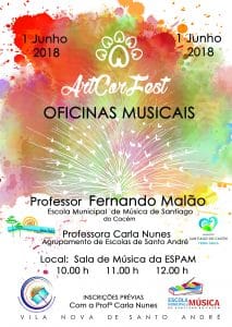 ![]() De 1 a 30 de junho está patente na Biblioteca Municipal Manuel José "do Tojal", em Vila Nova de Santo André, a exposição Brincar a Arte, de trabalhos elaborados pelas crianças do berçário ao ensino pré-escolar em colaboração com os pais. Um projeto que desperta os sentidos no olhar o mundo, na descoberta dos sentimentos, das […] ![]() A programação cultural para o mês de junho no município de Santiago do Cacém já está disponível. Conheça as nossas atividades e faça as suas escolhas! Programação cultural de junho ![]() Dia 1 de junho realiza-se a ArtCor Fest - Oficinas Musicais com três sessões: 10h00, 11h00 e 12h00, na sala de música da Escola Secundária Padre António Macedo, em Vila Nova de Santo André. A iniciativa é dirigida pelo Professor Fernando Malão, da Escola Municipal de Música de Santiago do Cacém, e pela Professora Carla […]