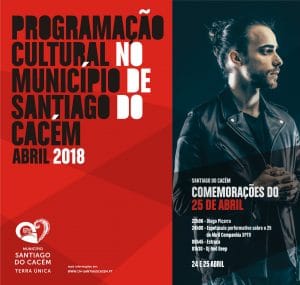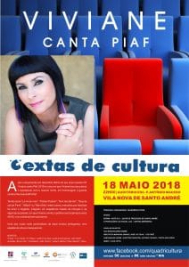 ![]() No dia 18 de maio, às 21h00, no Museu Municipal de Santiago do Cacém, no âmbito das Comemorações do Dia Internacional dos Museus, venha participar na iniciativa Conversa com...A Caricatura em Portugal, com o historiador Dr. Osvaldo Macedo de Sousa e o caricaturista Ricardo Galvão. A partir das 22h00 venha ao Museu fazer a sua caricatura! […] ![]() No dia 18 de maio, às 22h00, no Auditório da Escola Secundária Padre António Macedo, em Vila Nova de Santo André, mais uma noite de "C"extas de Cultura com Viviane a cantar Piaf. Cextas de Cultura_Viviane canta Piaf |