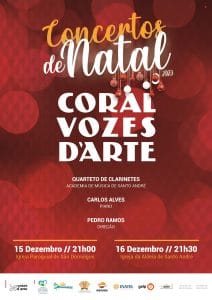 ![]() O Coral Vozes D'Arte apresenta os tradicionais concertos de natal no dia 15 de dezembro, pelas 21h00 na Igreja de São Domingos e no dia 16 de dezembro , pelas 21h30, na Igreja da Aldeia de Santo André. Participação do Quarteto de Clarinetes da Academia de Música de Santo André e do pianista Carlos Alves. […] ![]() Dia 15 de dezembro, pelas 21h30, o Auditório da Escola Secundária Padre António Macedo, em Vila Nova de Santo André, recebe Afonso Cabral em mais uma edição das Cextas de Cultura, organizado pela Quadricultura Associação, com o apoio da Câmara Municipal de Santiago do Cacém e da Junta de freguesia de Santo André. Conhecido pelo […] |