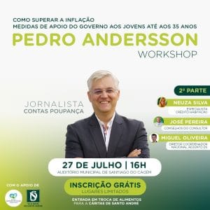 ![]() Realiza-se no próximo dia 27 de julho, no Auditório Municipal António Chainho, pelas 16h00, o Workshop sobre "Como Superar a Inflação Medidas de Apoio do Governo aos Jovens até aos 35 Anos" com a presença do jornalista Pedro Andersson (rubrica Contas Poupanças da SIC). Serão também oradores : Neuza Silva, José Pereira e Miguel Oliveira. […]