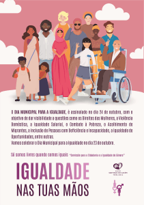 ![]() 𝐕𝐚𝐦𝐨𝐬 𝐜𝐞𝐥𝐞𝐛𝐫𝐚𝐫 𝐨 𝐃𝐢𝐚 𝐌𝐮𝐧𝐢𝐜𝐢𝐩𝐚𝐥 𝐩𝐚𝐫𝐚 𝐚 𝐈𝐠𝐮𝐚𝐥𝐝𝐚𝐝𝐞 𝐧𝐨 𝐝𝐢𝐚 𝟐𝟑 𝐝𝐞 𝐨𝐮𝐭𝐮𝐛𝐫𝐨, 𝟏𝟎𝐡𝟑𝟎, 𝐟𝐫𝐞𝐧𝐭𝐞 𝐚𝐨 𝐌𝐞𝐫𝐜𝐚𝐝𝐨 𝐌𝐮𝐧𝐢𝐜𝐢𝐩𝐚𝐥 𝐞𝐦 𝐒𝐚𝐧𝐭𝐢𝐚𝐠𝐨 𝐝𝐨 𝐂𝐚𝐜𝐞́𝐦 O DIA MUNICIPAL PARA A IGUALDADE é assinalado no dia 24 de outubro com o objetivo de dar visibilidade a questões como os Direitos das Mulheres, a Violência Doméstica, a Igualdade Salarial, o […] |