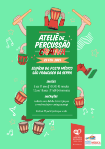 ![]() Realiza-se no dia 22 de fevereiro, um Ateliê de Percussão Criativa com duas sessões: 8 aos 11 anos, às 10h30, e dos 12 aos 18 anos, às 11h30, no edifício do Posto Médico de São Francisco da Serra. A iniciativa tem como objetivo a exploração do Djambé, estimulando a criatividade e a coordenação em grupo […] ![]() No próximo dia 22 de fevereiro, pelas 16h00, realiza-se o Sarau de Ginástica da ACROESA do Estrela de Santo André, no Pavilhão Municipal Padre Amadeu Pinto, em Vila Nova de Santo André.
