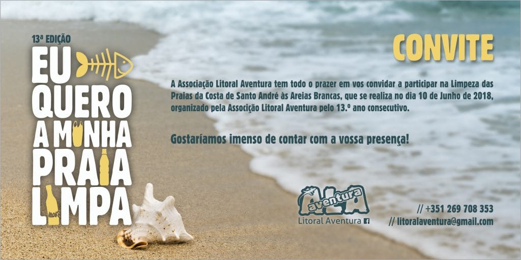 Dia 10 de junho, a partir das 8h00, realiza-se a 13.ª edição da iniciativa de sensibilização ambiental Limpezas das Praias de Vila Nova de Santo André, Fonte do Cortiço (Areias Brancas), Porto das Carretas (Vacaria) e Costa de Santo André.