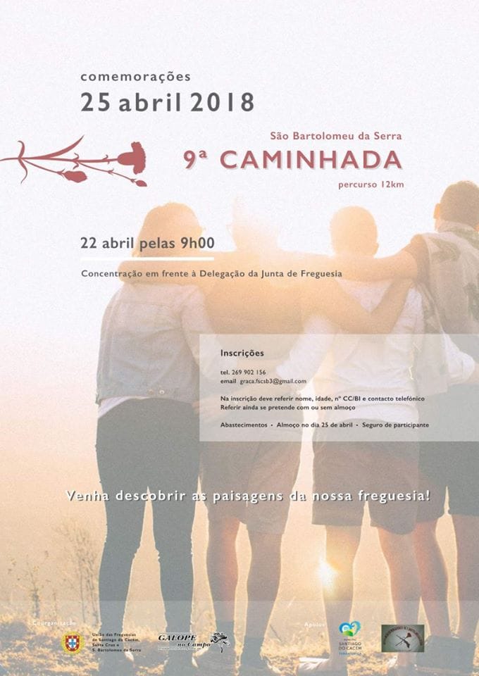 Dia 22 de abril, às 9h00, com concentração em frente à Delegação da Junta de Freguesia, realiza-se a 9.ª Caminhada em São Bartolomeu com 12 Km, no âmbito das Comemorações do 25 de Abril.