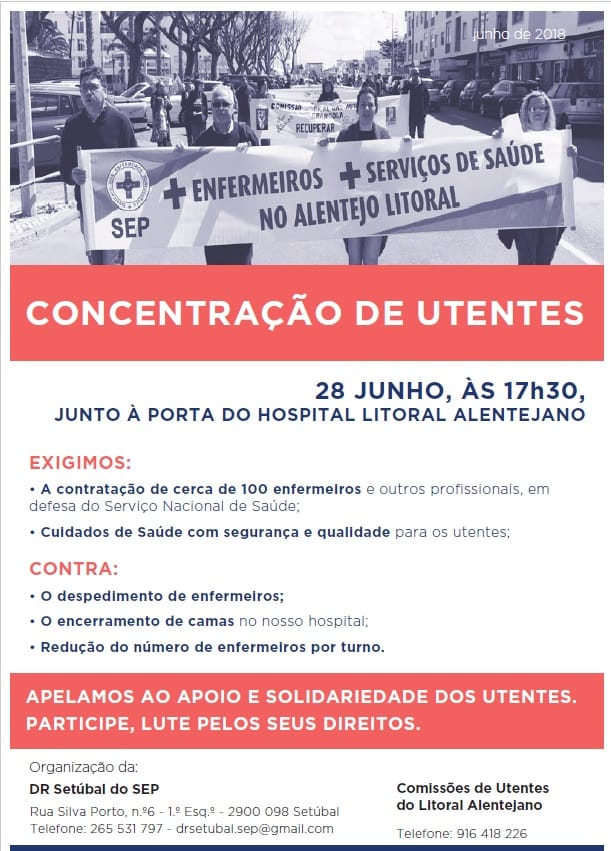 Dia 28 de junho, 17h30, contra o despedimento de enfermeiros, o encerramento de camas e a redução do número de enfermeiros por turno. Participe! Lute pelos seus direitos!