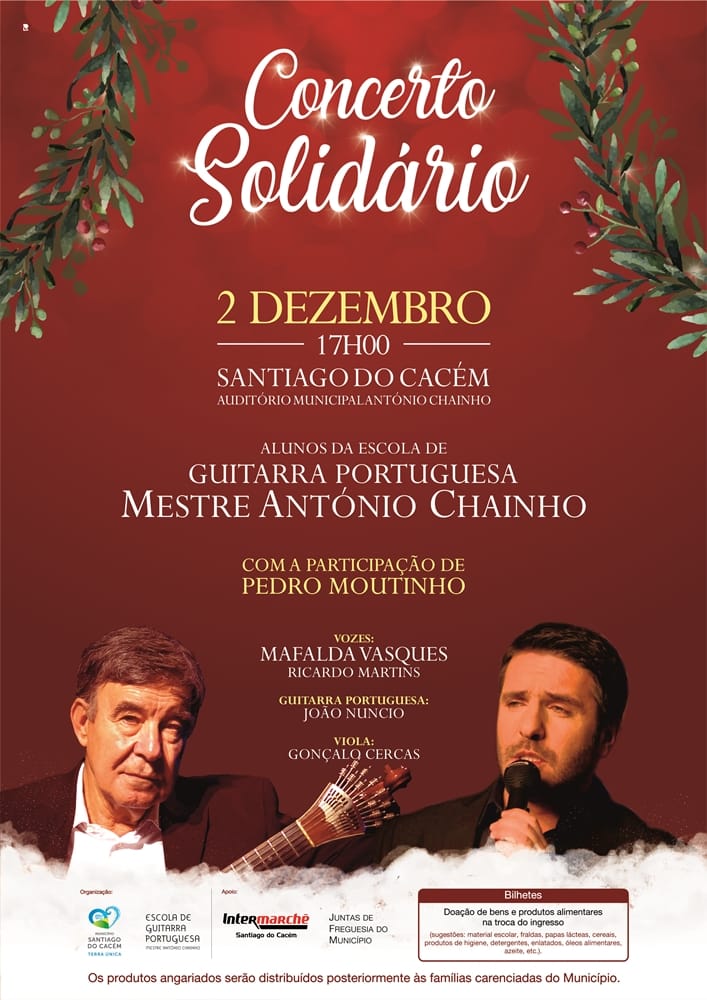 No dia 2 de de dezembro, às 17h00, realiza-se o Concerto Solidário com os alunos da Escola de Guitarra Portuguesa Mestre António Chainho, no Auditório Municipal António Chainho, em Santiago do Cacém. O espetáculo conta com a participação de Pedro Moutinho, vozes de Mafalda Vasques e Ricardo Martins, na guitarra portuguesa João Núncio e na viola Gonçalo Cercas.