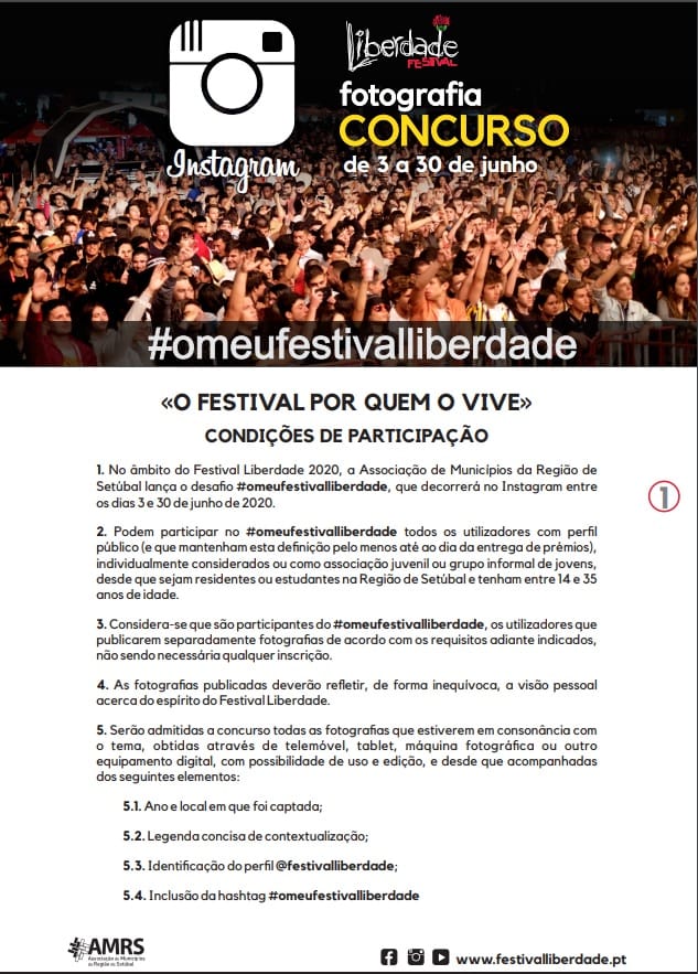 No âmbito do Festival Liberdade 2020, a Associação de Municípios da Região de Setúbal lança o desafio #omeufestivalliberdade, que decorrerá no Instagram entre os dias 3 e 30 de junho de 2020.