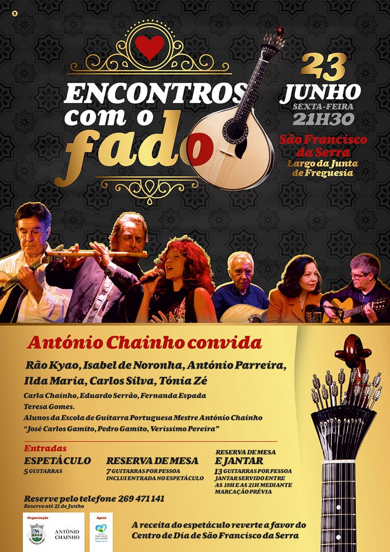 23 de junho, 21h30, Largo da Junta de Freguesia de São Francisco da Serra. António Chainho e convidados. A receita do espetáculo reverte para o Centro de Dia de São Francisco da Serra. Reserve o seu lugar no Centro de Dia, entre as 09h00 e as 17h00, telefone 269 471 141.