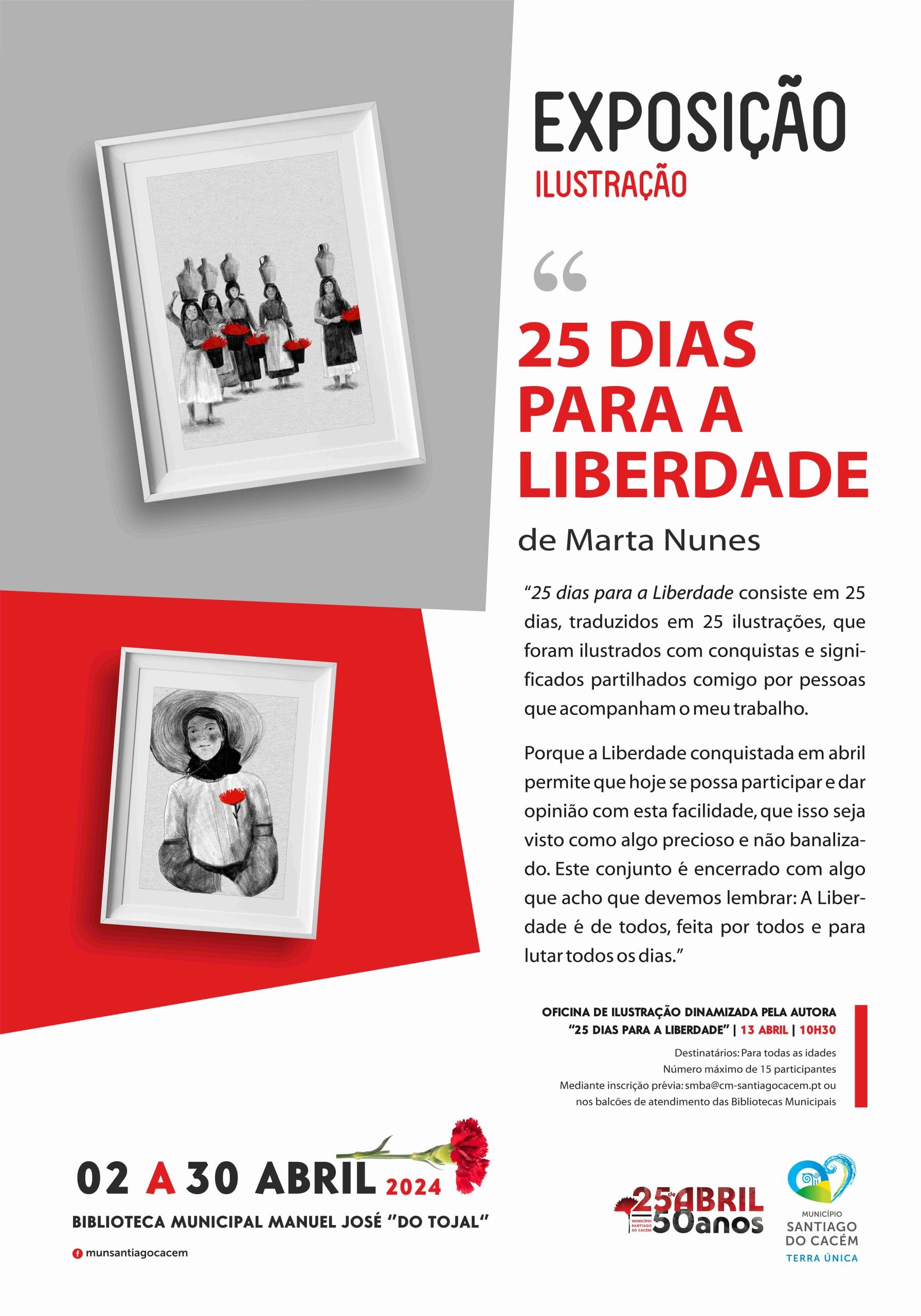Está patente de 2 a 30 de abril, na Biblioteca Municipal Manuel José “do Tojal”, em Vila Nova de Santo, a exposição de ilustração 25 Dias para a Liberdade de Marta Nunes.