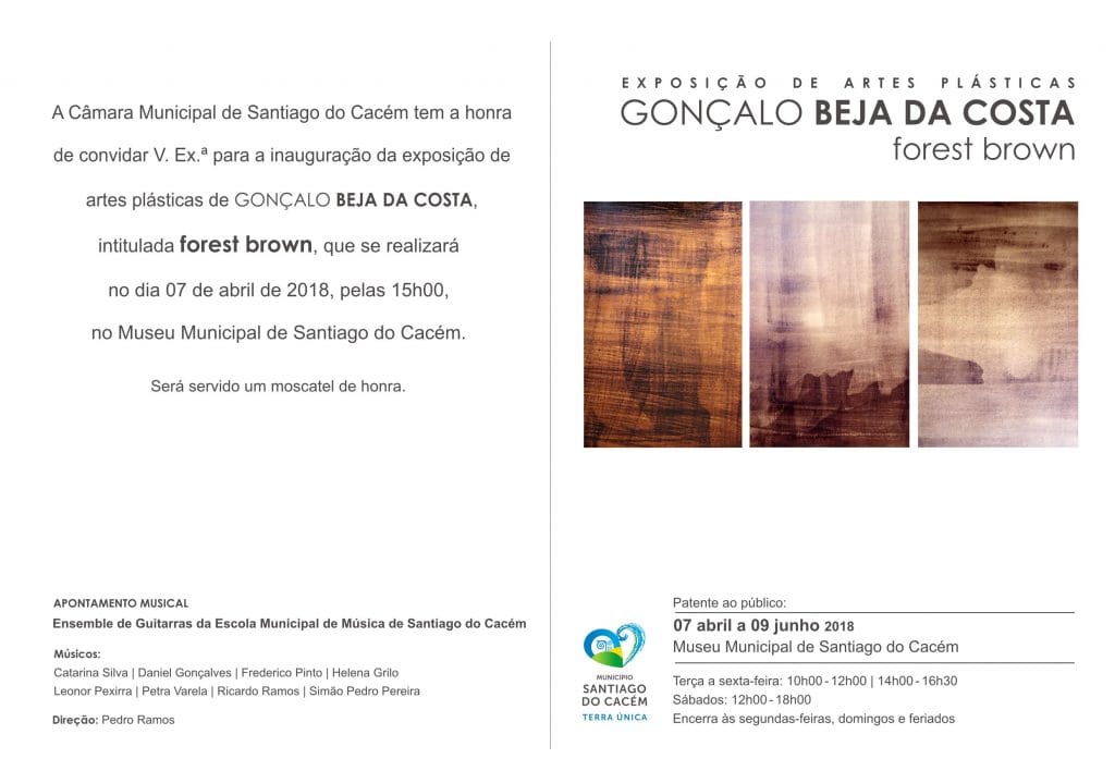 De 7 de abril a 29 de setembro vai estar patente no Museu Municipal de Santiago do Cacém, a exposição de Gonçalo Beja de Costa intitulada Forest Brown.