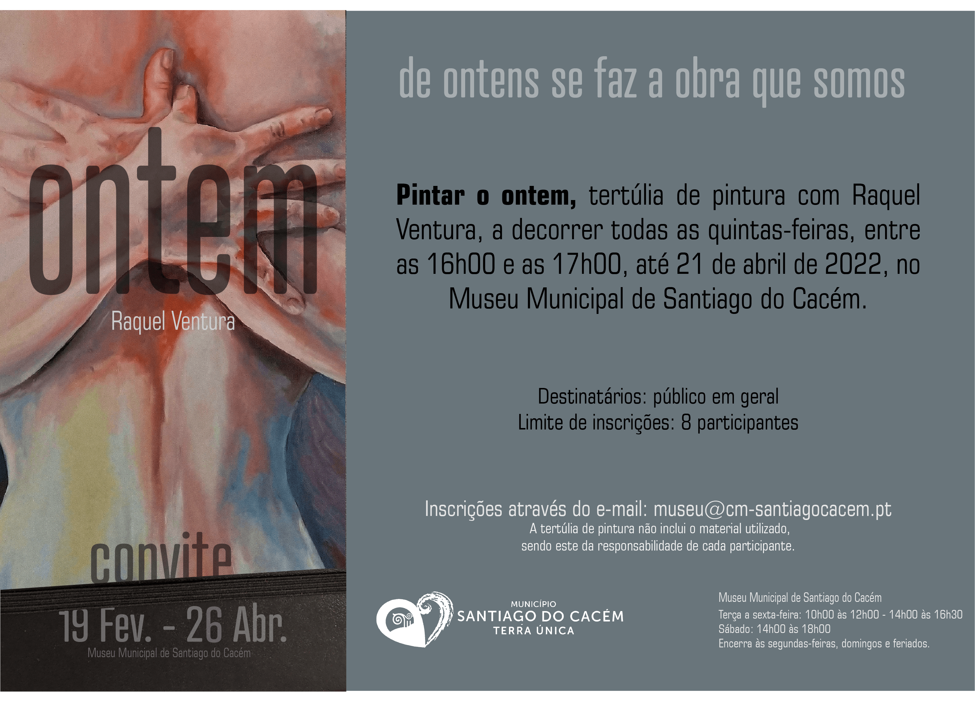 O conjunto de trabalhos que compõem a exposição “ONTEM”, patente no Museu Municipal de Santiago do Cacém, até 26 de abril de 2022, foram produzidos pela artista Raquel Ventura, em vários momentos, com propósitos que preencheram ontens dispersos no tempo e que se perpetuam na sua realidade bidimensional.