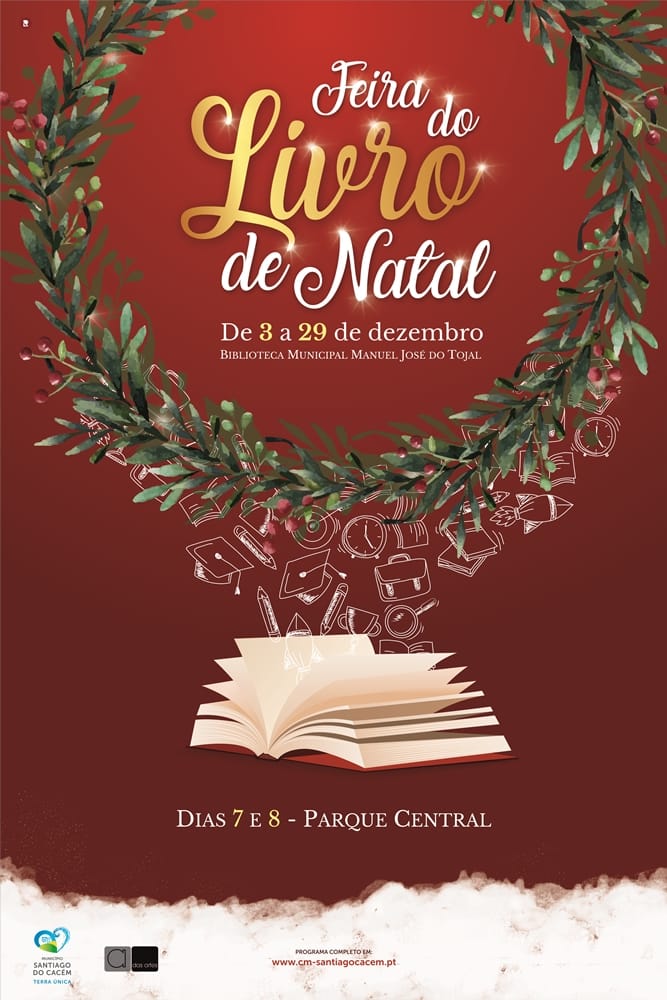 Nos dia 7 e 8 de dezembro a Feira do Livro está no Parque Central em Vila Nova de Santo André e nos dias 14, 15 e 16 de dezembro está no Parque Verde da Quinta do Chafariz em Santiago do Cacém.