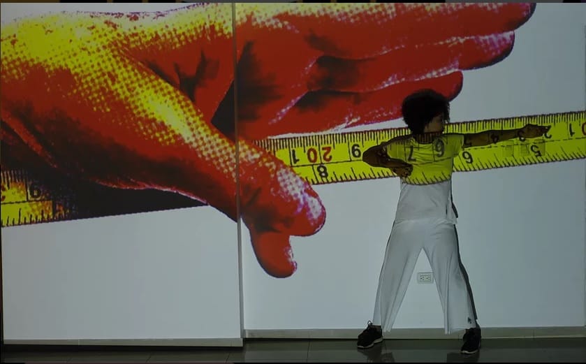 “Antropofobia” incorpora esses vídeos e a presença de uma bailarina ao vivo.”,