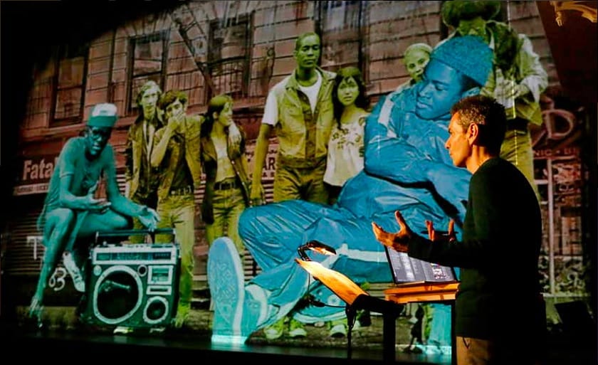 performance Inclassificável – meio palestra, meio concerto de hip hop – o desenhador António Jorge Gonçalves guia-nos com palavras e desenhos pelos riscos que caçadores-recoletores fizeram nas rochas há 30.000 anos, pelas anotações desenhadas dos romanos nas paredes das casas em Pompéia, e pelos murais mexicanos de há 100 anos atrás, enquanto o MC e ativista Flávio Almada aka LBC Soldjah nos leva com palavras e música até às contradições sociais das nossas cidades. Tudo para podermos compreender as pinturas a lata de spray que enchem em sobressalto os nossos muros. Sem condescendência, o espetáculo atravessa