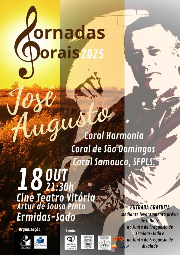 As Jornadas Corais são uma das iniciativas de caráter anual promovidas pelo Coral Harmonia de Santiago do Cacém. Surgiram no ano 2000 com o objetivo de implementar um novo ciclo dedicado à música coral polifónica, reforçando positivamente a dinâmica cultural da nossa cidade e do nosso município. Este ano realizam-se nos dias 18 e 19 de outubro no Cine Teatro Vitória – Artur de Sousa Pinto, em Ermidas-Sado, e no Auditório Municipal de Alvalade, respetivamente.
