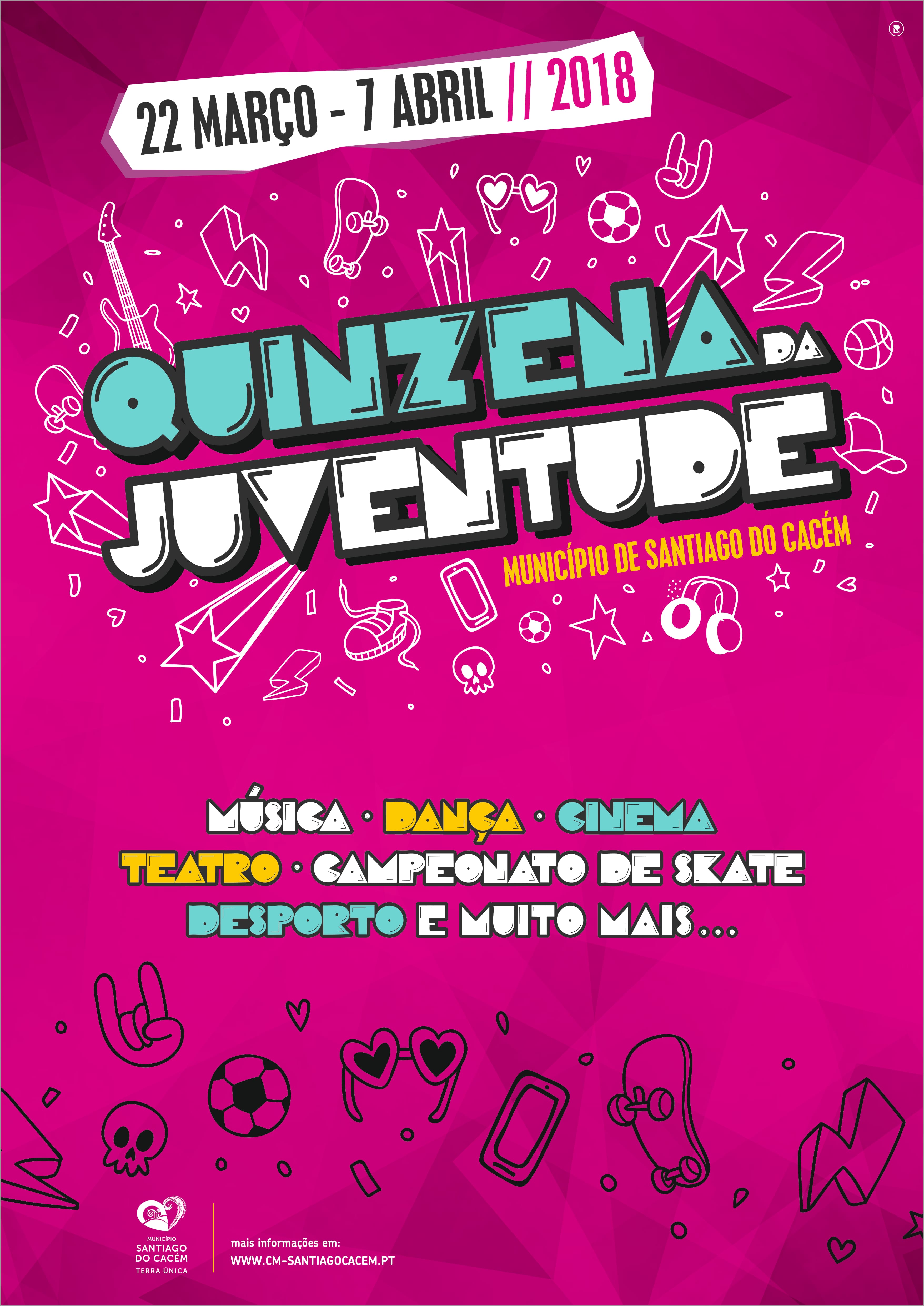Decorre de 22 de março a 7 de abril a Quinzena da Juventude no Município de Santiago do Cacém. Música, dança, cinema, campeonato de skate, desporto e muito mais….
