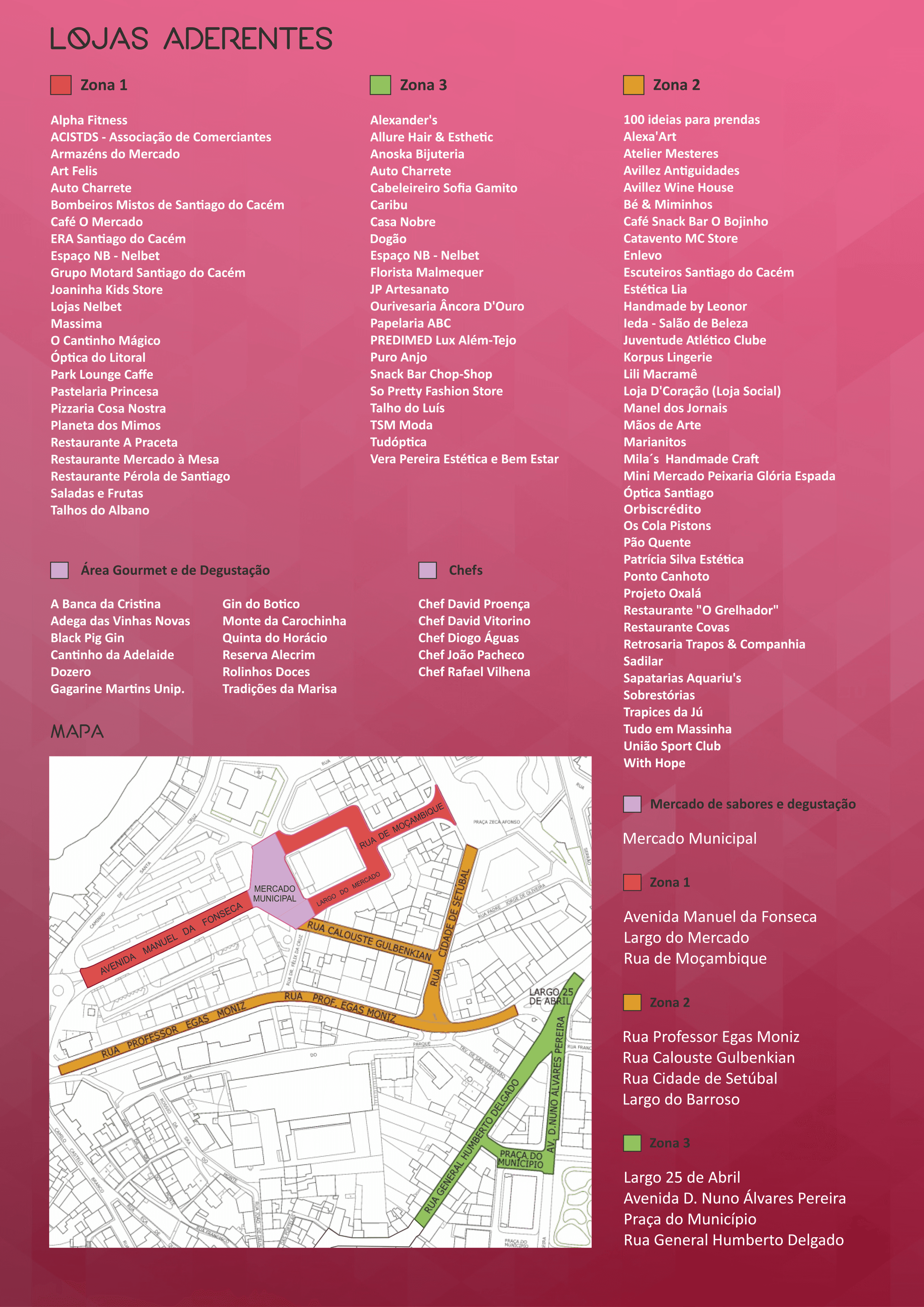 Nos dias 14 e 15 de julho, as noites de Santiago do Cacém voltam ser diferentes. As lojas aderentes vão voltar a ter horários alargados, celebra-se a moda. Há degustações, promoções, música e muita animação. Venha viver estas noites com alegria…Trata-se de uma aposta da Autarquia para a dinamização do comércio local.