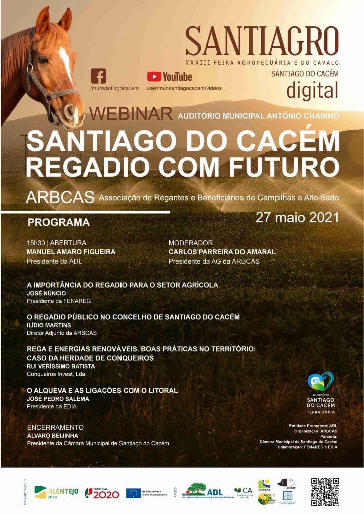 15h30 – Webinar “Santiago do Cacém Regadio com Futuro” – ARBCAS-Associação de Regantes e Beneficiários de Campilhas e Alto Sado