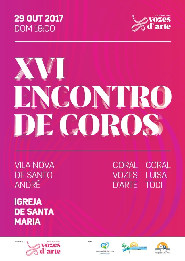 No dia 29 de outubro, às 18h00, realiza-se o XVI Encontro de Coros, na Igreja de Santa Maria, em Vila Nova de Santo André, com o coral anfitrião, Coral Vozes D’Arte e o Coral Luísa Todi.