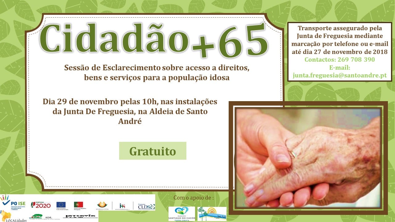 Junta de Freguesia de Santo André - Aldeia de Santo AndréNo dia 29 de novembro, pelas 10h00, nas instalações da Junta de Freguesia de Santo André, na Aldeia de Santo André, realiza-se uma sessão de esclarecimento, gratuita, sobre acesso a direitos, bens e serviços para a população idosa. O transporte é assegurado pela Junta de Freguesia de Santo André, mediante marcação por telefone ou e-mail […]