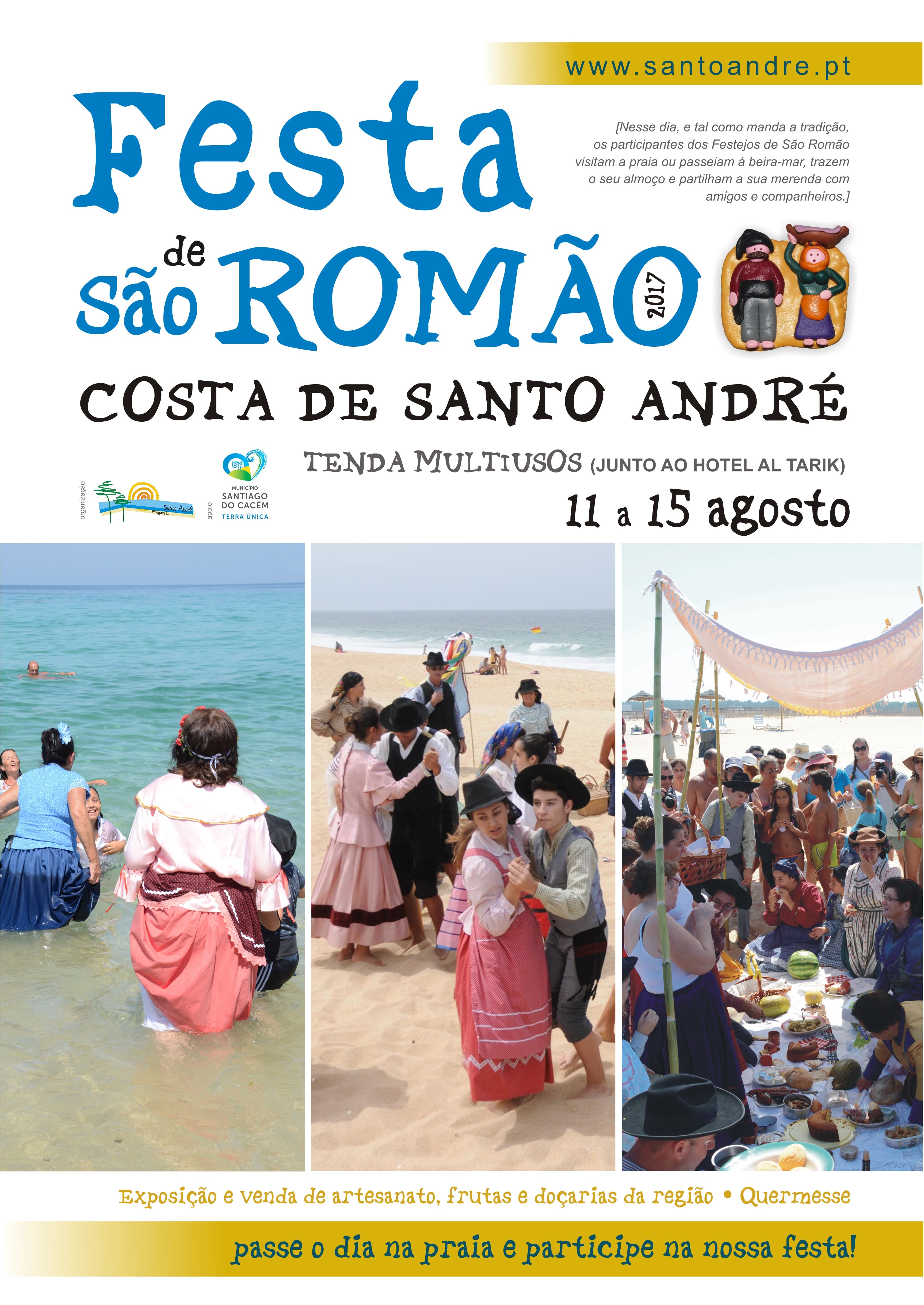 Praia da Costa de Santo AndréDe 11 a 15 de agosto a Costa de Santo André recebe as tradicionais festas com a recriação dos seculares dos banhos de São Romão, exposições, venda de fruta e de doçaria da região, quermesse, bailes, música tradicional, sketches com a recriação das festas de São Romão, eleição da Miss e Mister Praia Costa de Santo […]