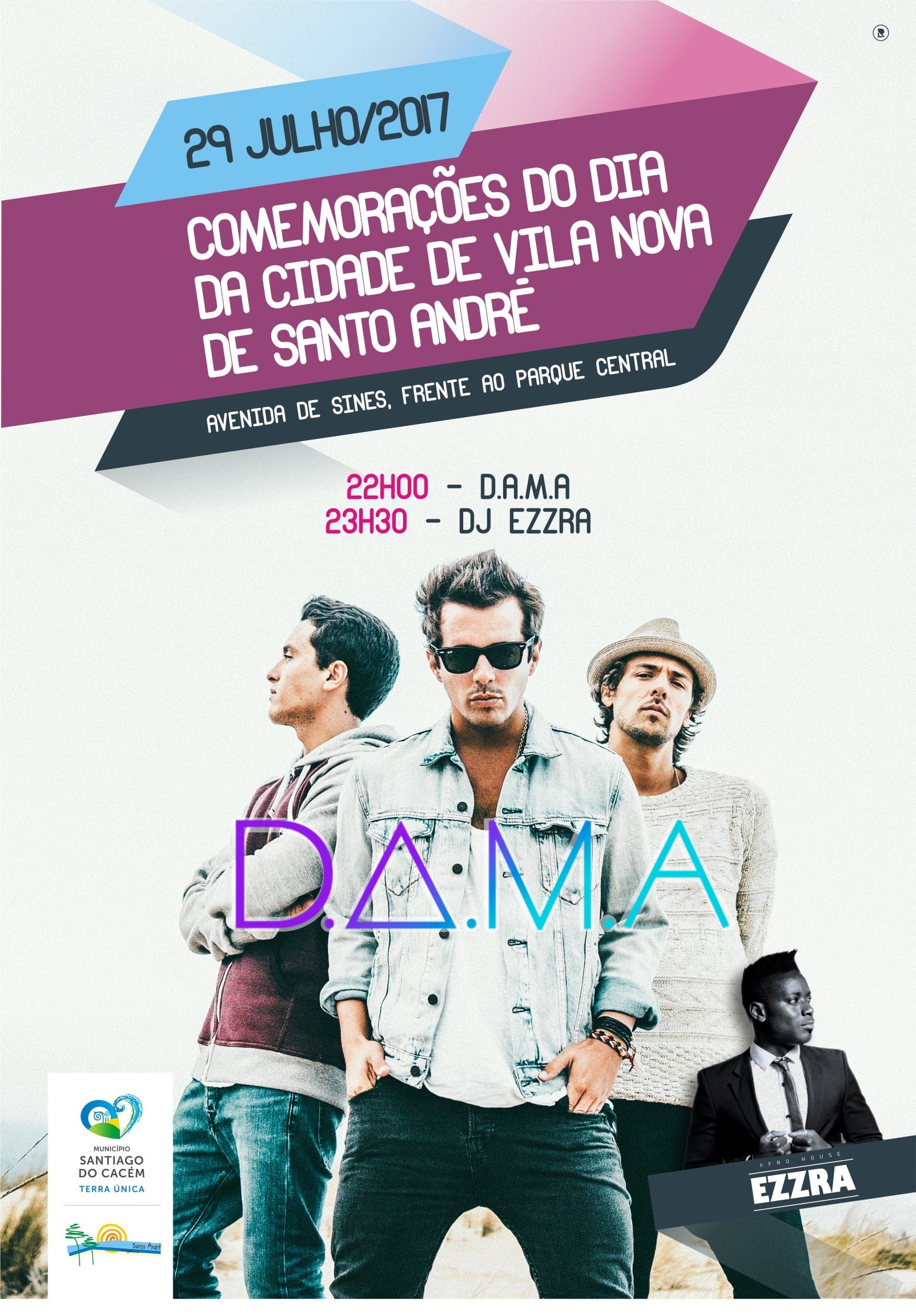 Vila Nova de Santo AndréDia 29 de julho, às 22h00, na Avenida de Sines, em frente ao Parque Central, em Vila Nova de Santo André, seguido do DJ EZZRA (23h30). Não Perca!