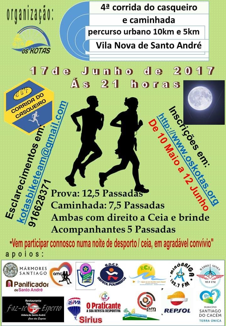 Vila Nova de Santo AndréDia 17 de junho, a partir das 21h00, em Vila Nova de Santo André, realiza-se a 4.ª Corrida e Caminhada do Casqueiro em percurso urbano, com as distâncias de 10 Km e 5 Km.
