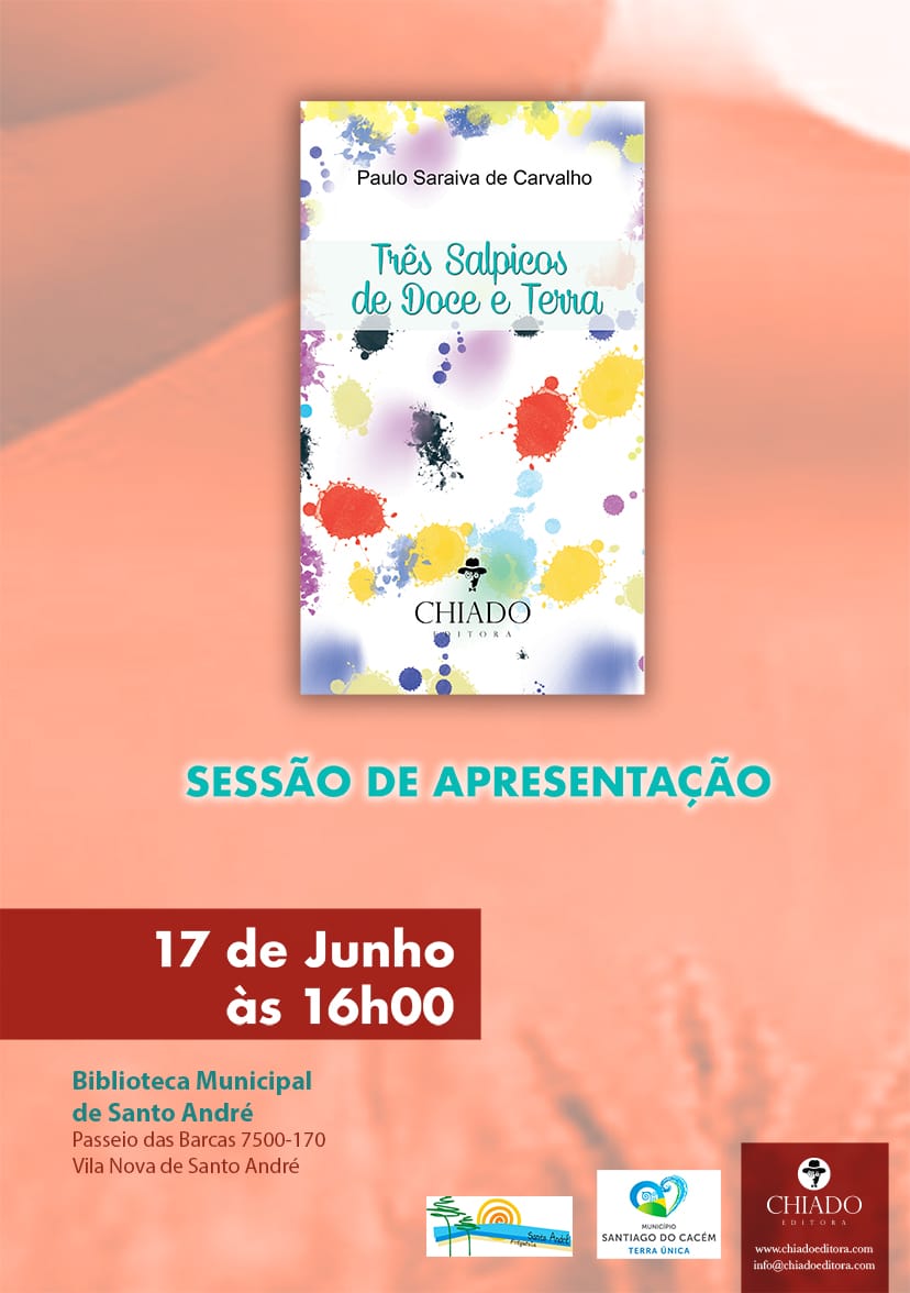 Vila Nova de Santo AndréNo dia 17 de junho, às 16h00, na Biblioteca Municipal Manuel José "do Tojal", em Vila Nova de Santo André, apresentação do livro de Paulo Saraiva de Carvalho, com edição Chiado Editora.