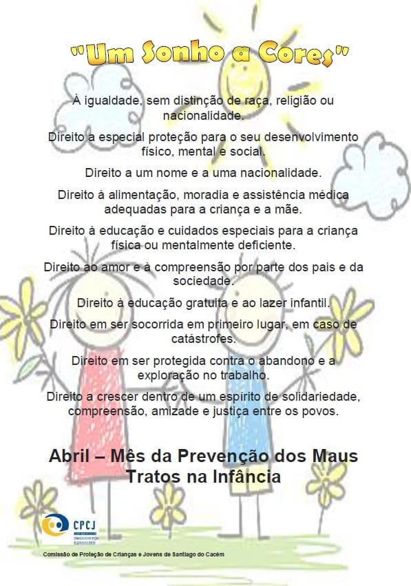 No âmbito do mês do laço azul – Mês da Prevenção dos Maus Tratos na Infância a Comissão de Proteção de Crianças e Jovens (CPCJ) de Santiago do Cacém lançou o desafio ao Agrupamento de Escolas de Santiago do Cacém e apresentamos os desenhos sobre os Direitos das Crianças elaborados pelas Crianças do Ensino Pré-Escolar .