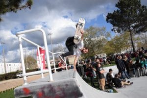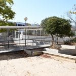 Área de intervenção de 2.400 m2 (aproximadamente). Compreende elementos para a prática de Skate, pavimentos contínuos em betão e a construção de plataformas sobrelevadas, parte integrante dos elementos / obstáculos dos diferentes percursos possíveis, e onde mais tarde se poderão colocar obstáculos amovíveis, construindo assim uma paisagem desafiante e adequada à prática deste desporto, para diferentes estádios de utilizadores (desde os iniciados aos profissionais). O espaço está dotado de uma rede de drenagem pluvial construída de raiz e ligada à rede pluvial existente.