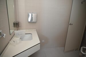 Introdução de equipamentos urbanos que qualifiquem a estadia e a visitação da área: uma área de Quiosque / Bar com esplanada, reabilitar as instalações sanitárias existentes e construir uma instalação sanitária acessível.