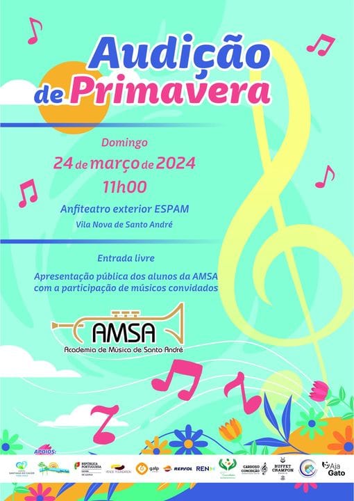 Escola Secundária Padre António MacedoA Academia de Música de Santo André vai realizar, dia 24 de março, pelas 11h00, anfiteatro exterior da Escola Secundária Padre António Macedo, a Audição Primavera de forma a valorizar o trabalho desenvolvido nas salas de aula da academia.